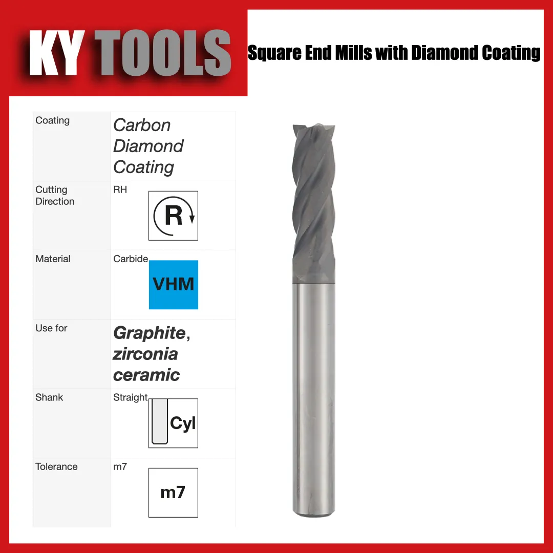 Frezy węglikowe z powłoką diamentową CVD zaprojektowane do obróbki elektrod grafitowych. Bardzo wysoka odporność na ścieranie i znacznie dłuższa trwałość niż standardowe frezy węglikowe.